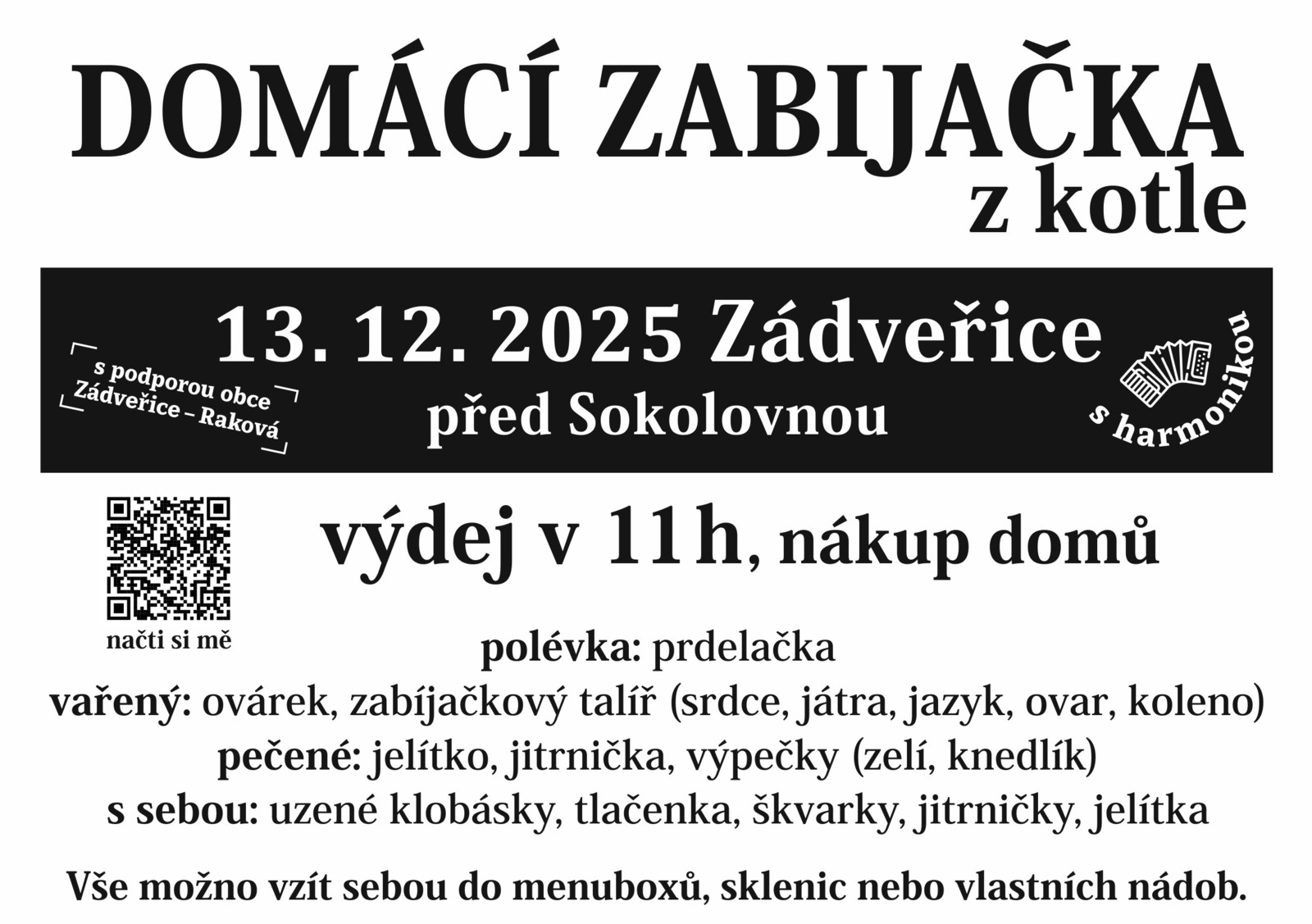Zabijačka - Zádveřice 13.12.2025 od 11 hod.